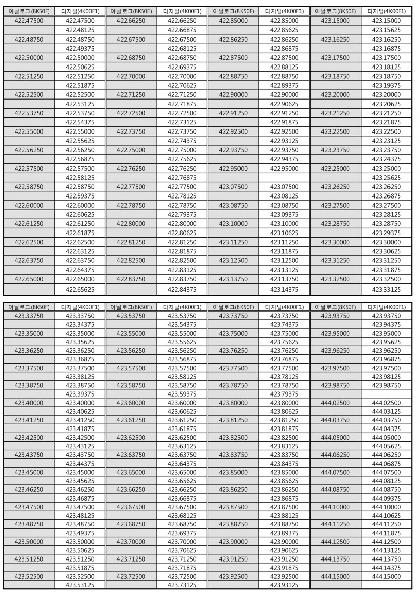 목록 [기타] 400M 간이주파수 차트 작성자 잘텍 작성일 17-05-01 14:23 | 조회 61,386 | 댓글 0 본문 아날로그 / 디지털 이전글다음글 댓글목록 0 등록된 댓글이 없습니다. 목록